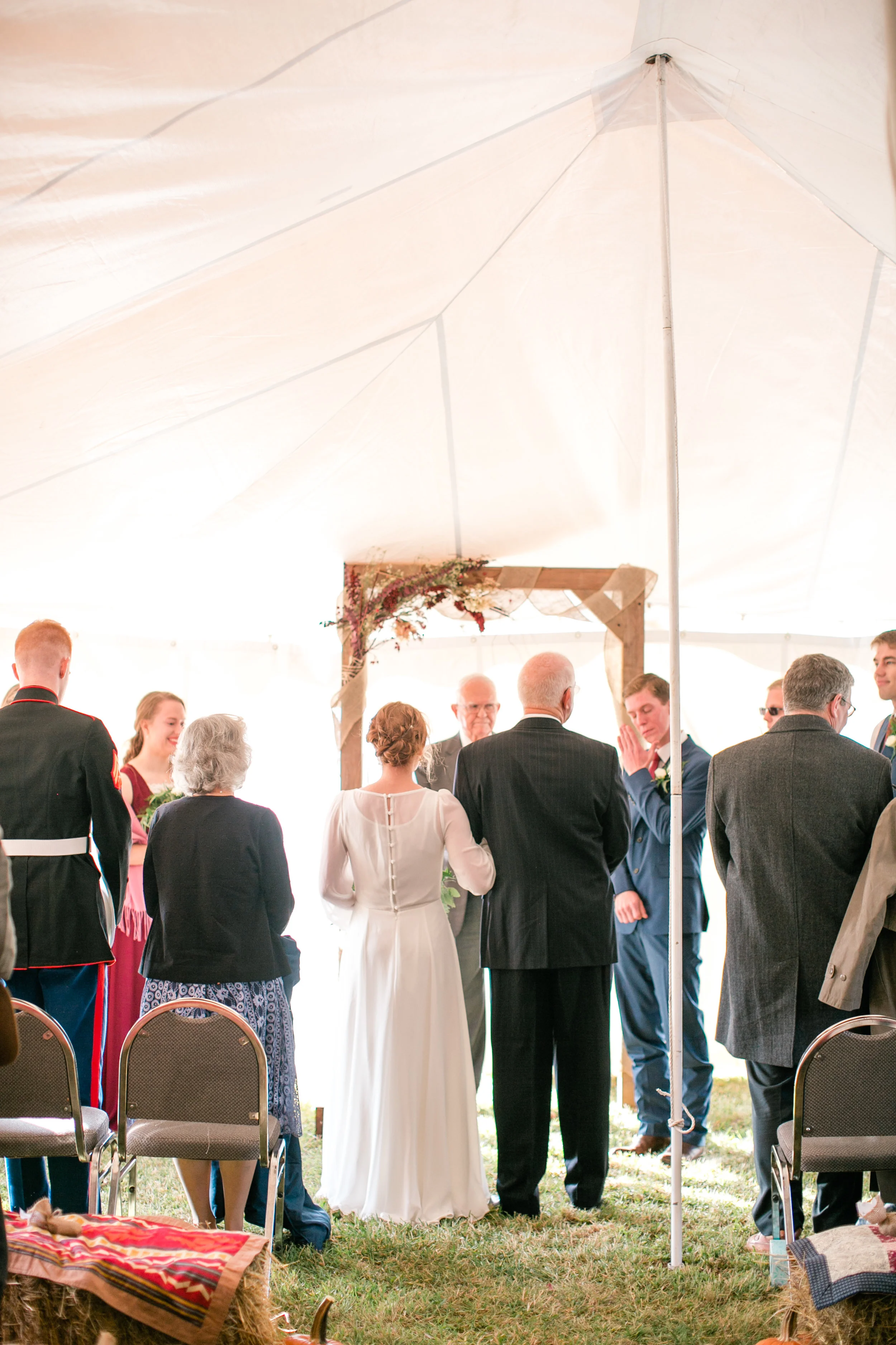 Just before the ceremony began, the sun started to come out from behind the clouds! The snow on the grass and tent began to melt, and it was such a sweet thing to notice.