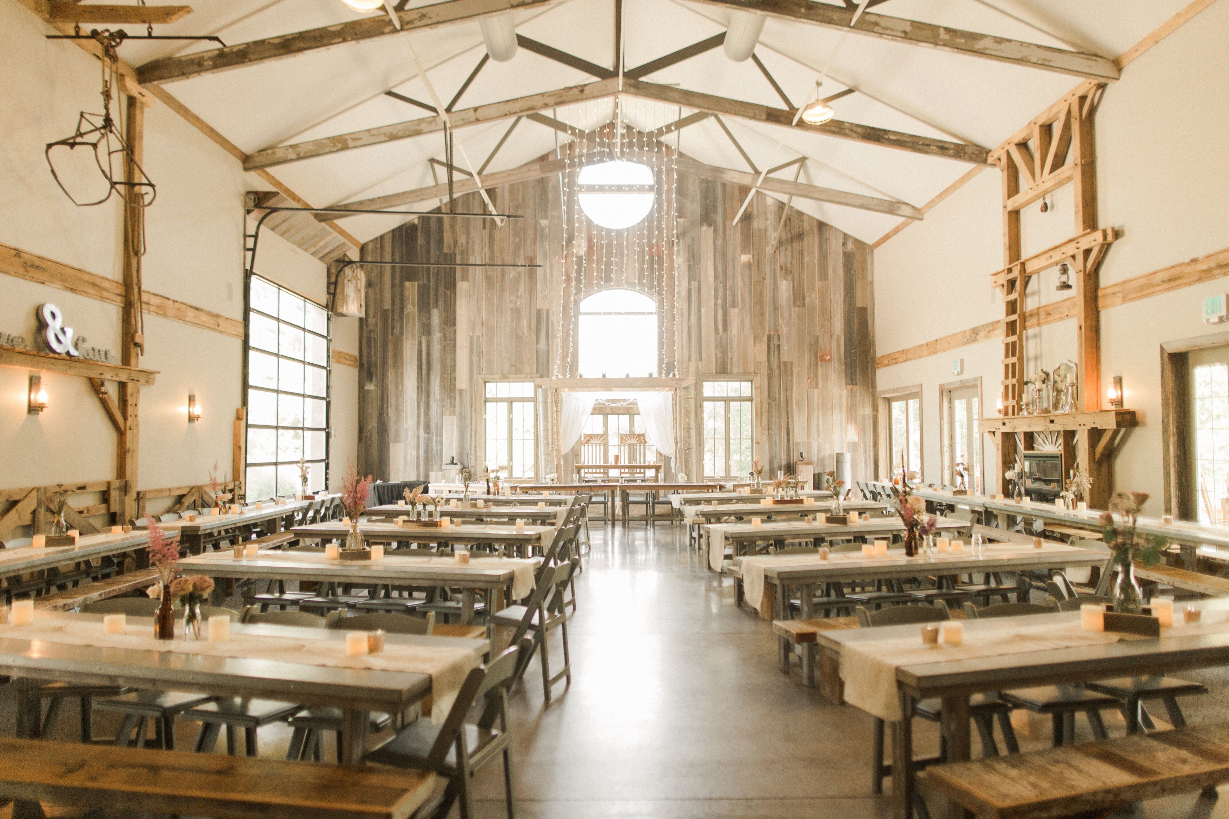 Check out Barnes Place for a super unique wedding venue! With a barn, enormous fireplace, and abundance of lush green trees + bushes, you’ll want for nothing. This venue hosts both outdoor and indoor ceremonies, so you can plan for whichever you prefer! (I always recommend outdoor —and Barnes Place has FOUR OUTDOOR LOCATIONS!—because celebrating life is just so much prettier in nature!)
