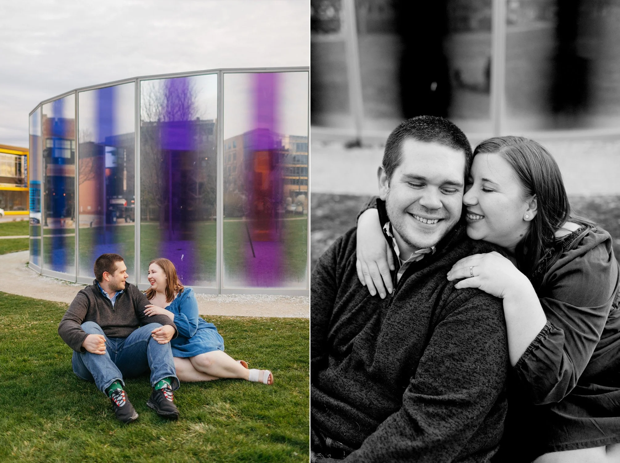 They brought along their dog (who was SO excited) and we enjoyed the warm sunshine on one of the few spring-like days we had here in central Iowa before the heat wave came through. I love when couples want a mix of nature and city, so after the park, we headed to the Pappajohn Sculpture Park to end their session, with a few alley detours along the way. ;)