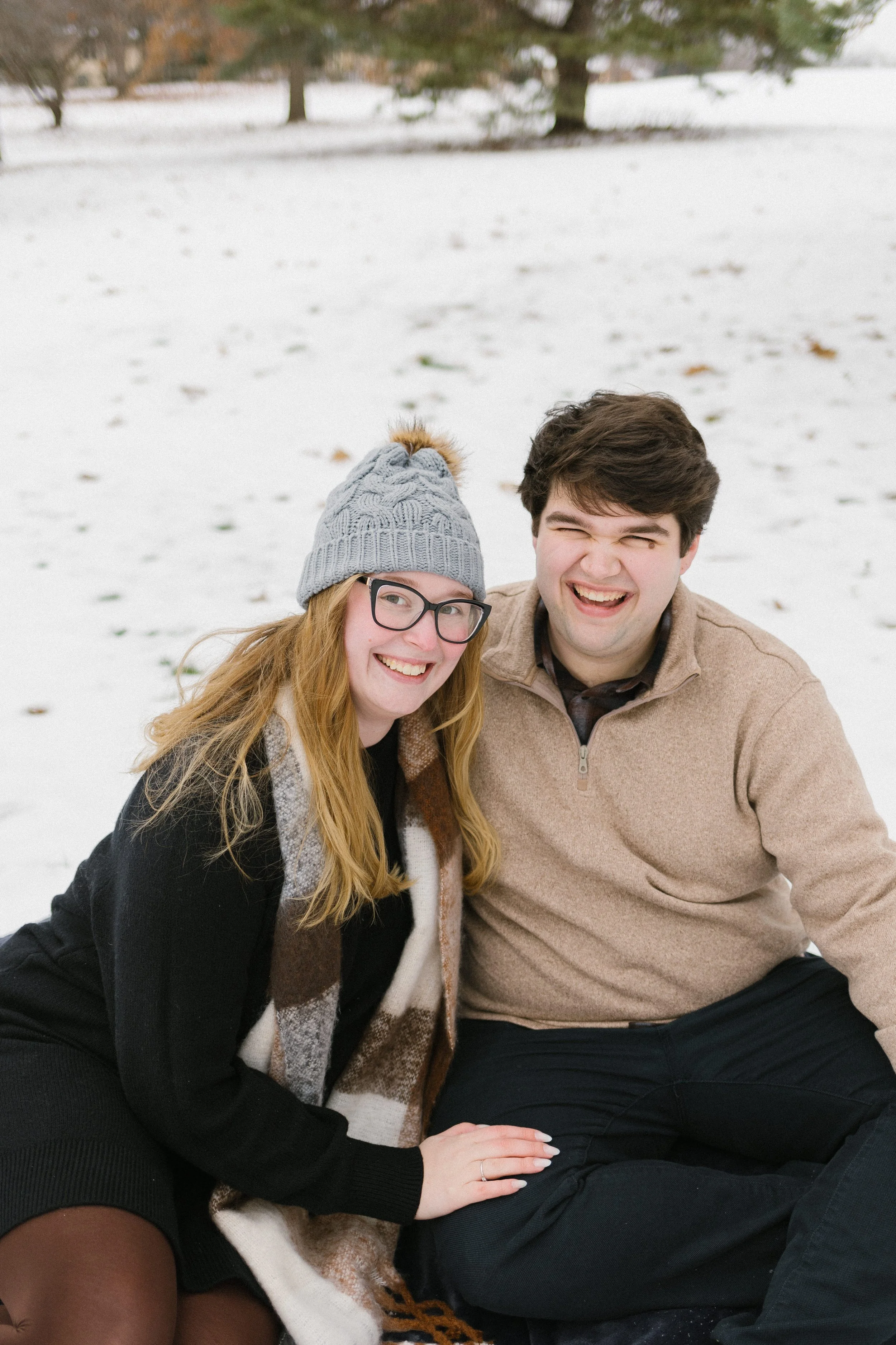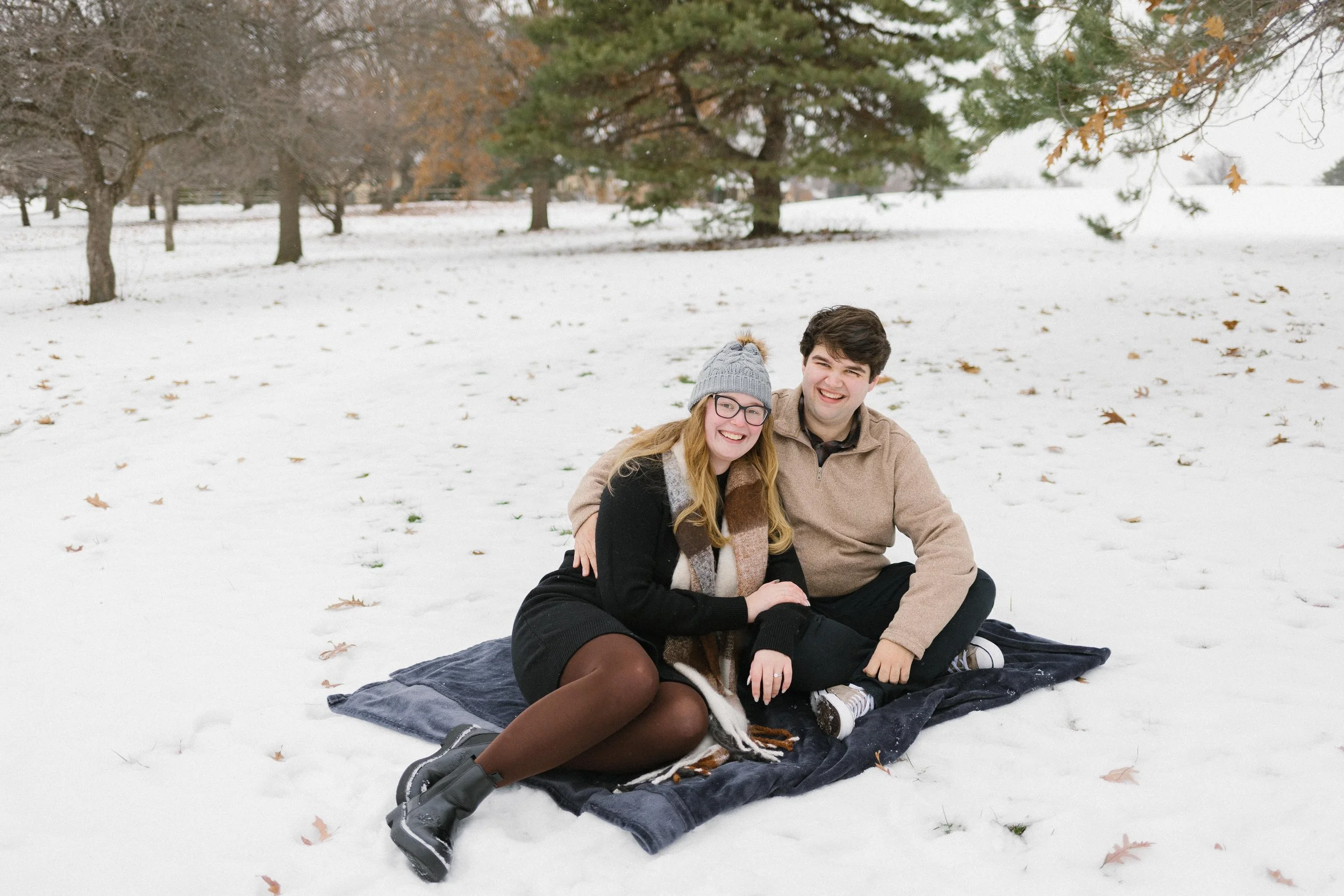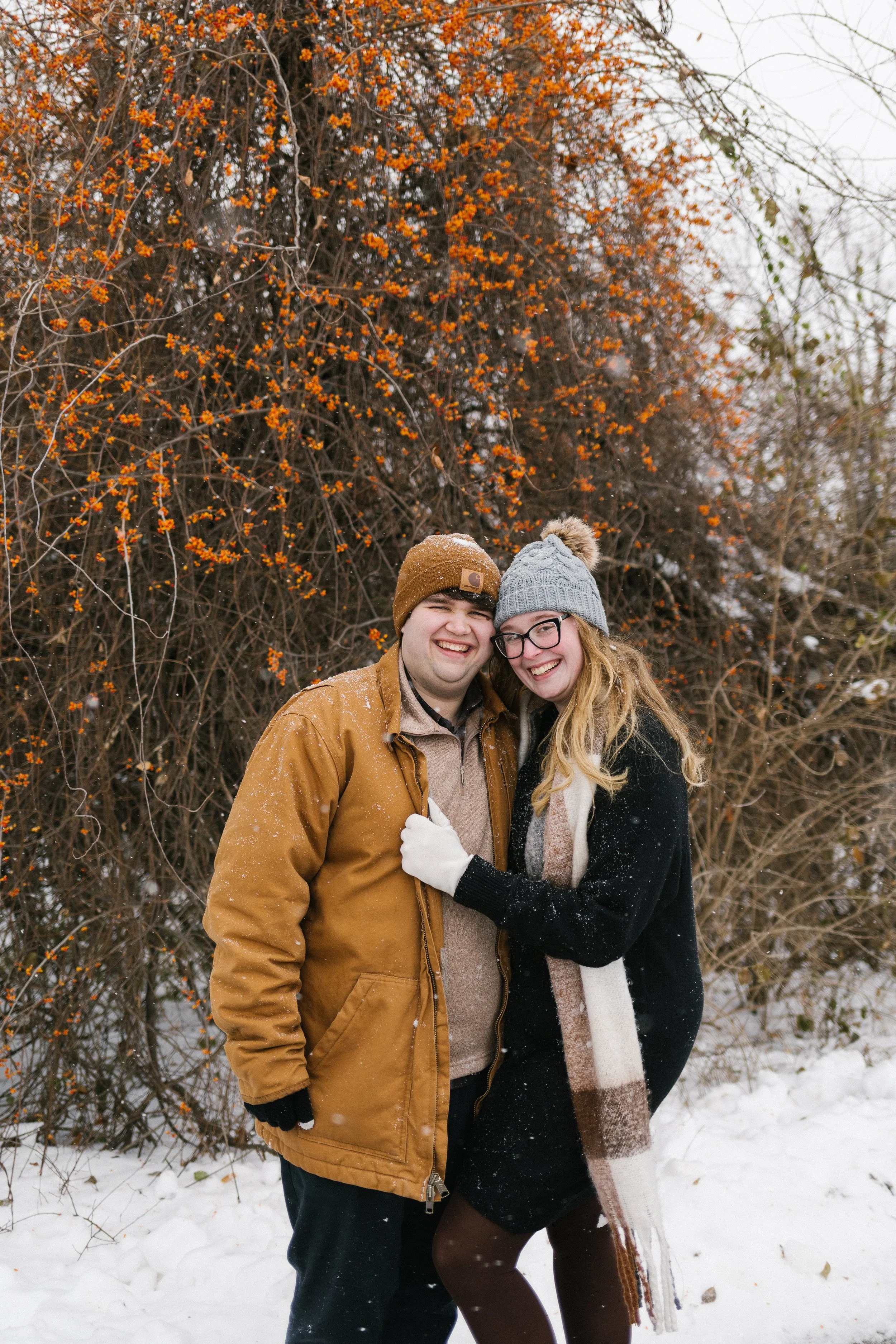 When Sam and Luke and I discussed engagement photos, we knew that fall pictures were off the table (per my 3 month study abroad in Korea)- so we chatted about doing them during the winter. Sam ended up having a surgery scheduled for December, just over a week after my return date. So we chose a date blindly for photos- and ended up with the most magical wintery setting! I truly can’t remember the last December in Iowa with more than a little snow accumulation, let alone THIS much snow! What a fun treat for the three of us to enjoy. :)