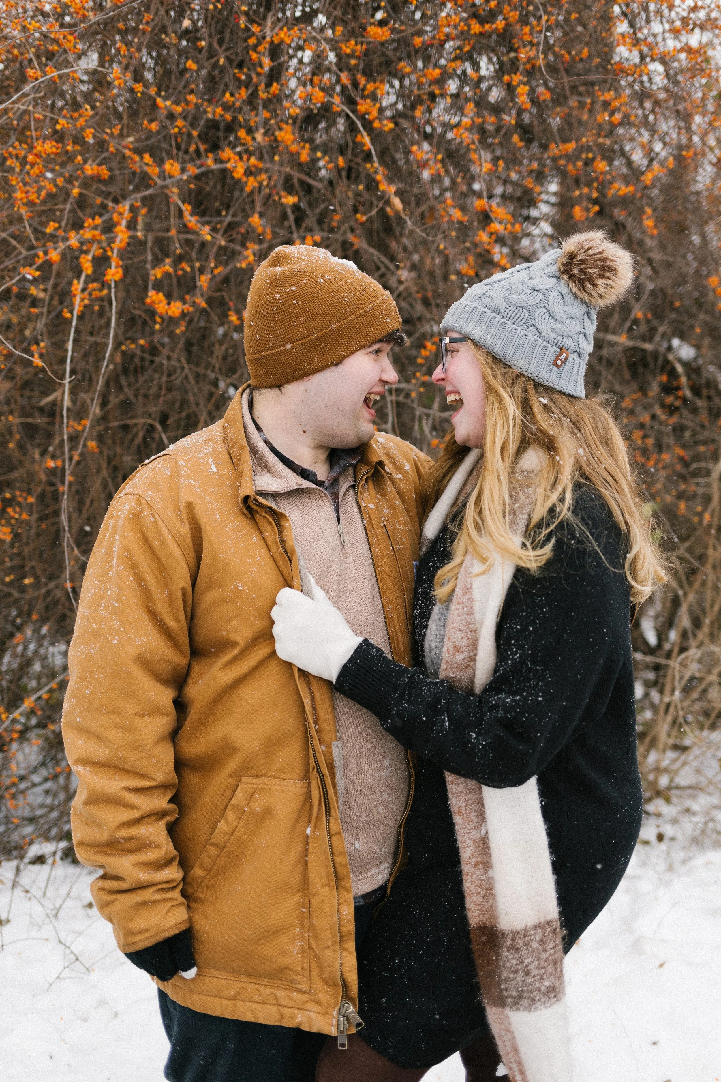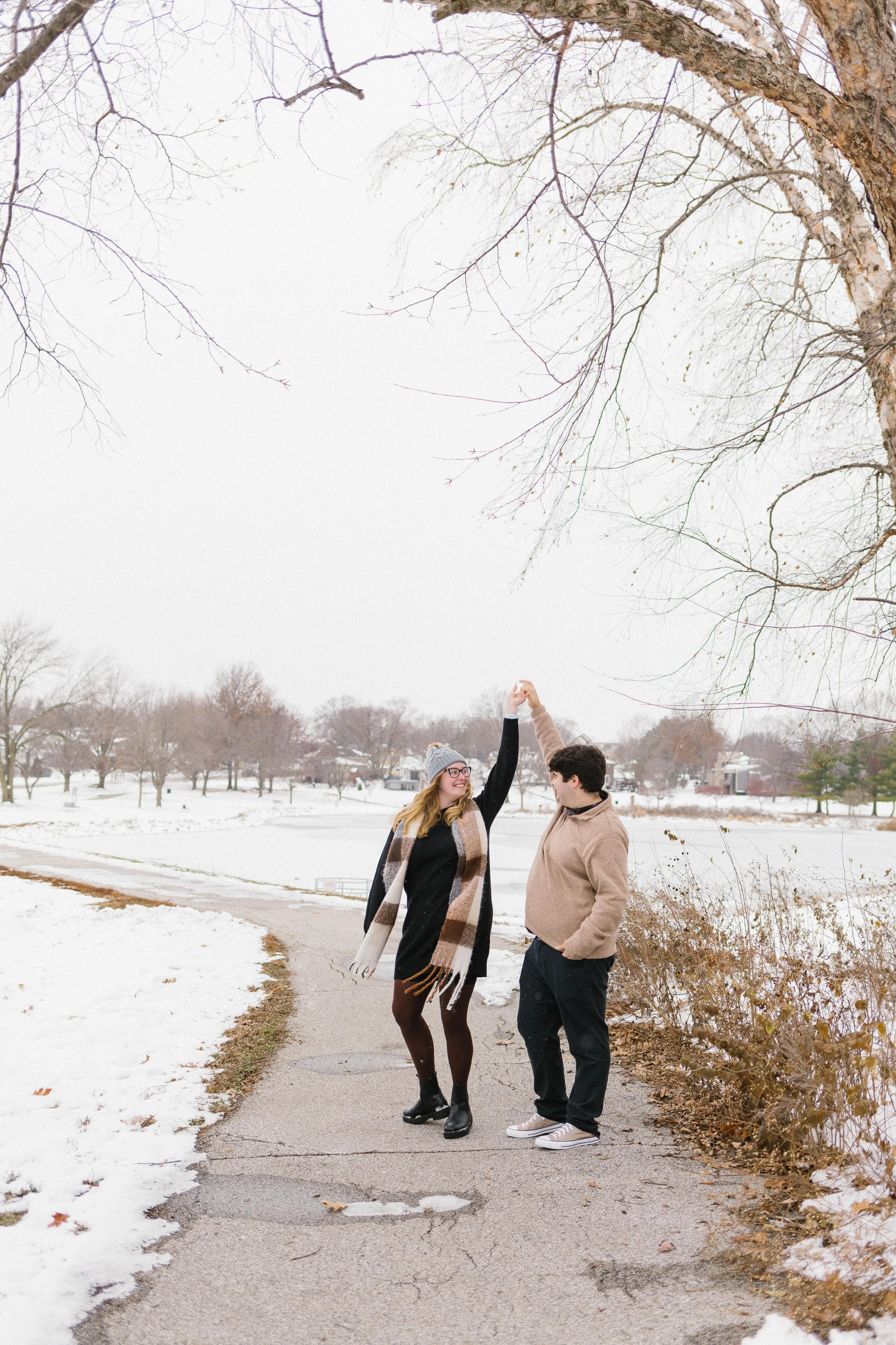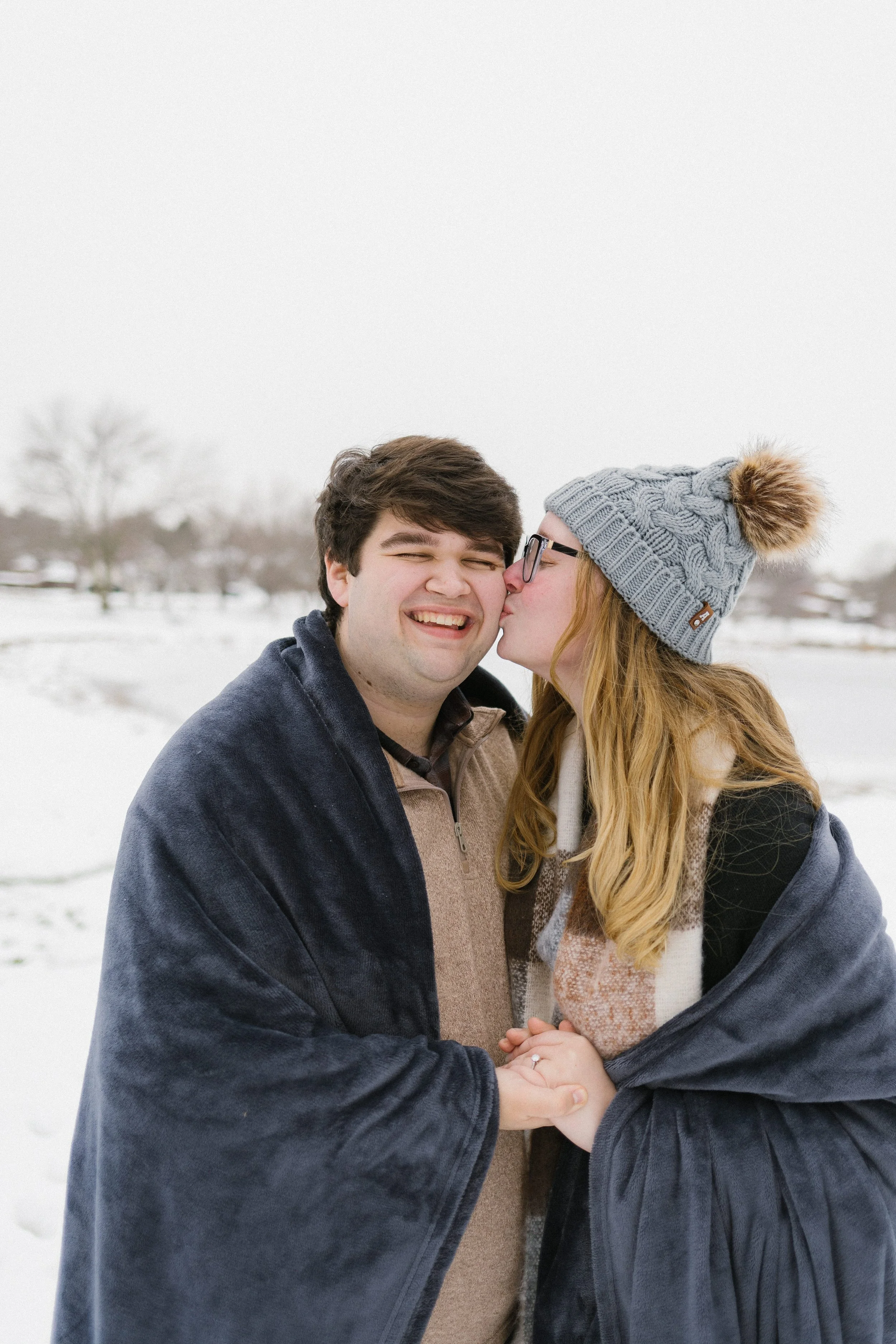 When Sam and Luke and I discussed engagement photos, we knew that fall pictures were off the table (per my 3 month study abroad in Korea)- so we chatted about doing them during the winter. Sam ended up having a surgery scheduled for December, just over a week after my return date. So we chose a date blindly for photos- and ended up with the most magical wintery setting! I truly can’t remember the last December in Iowa with more than a little snow accumulation, let alone THIS much snow! What a fun treat for the three of us to enjoy. :)